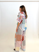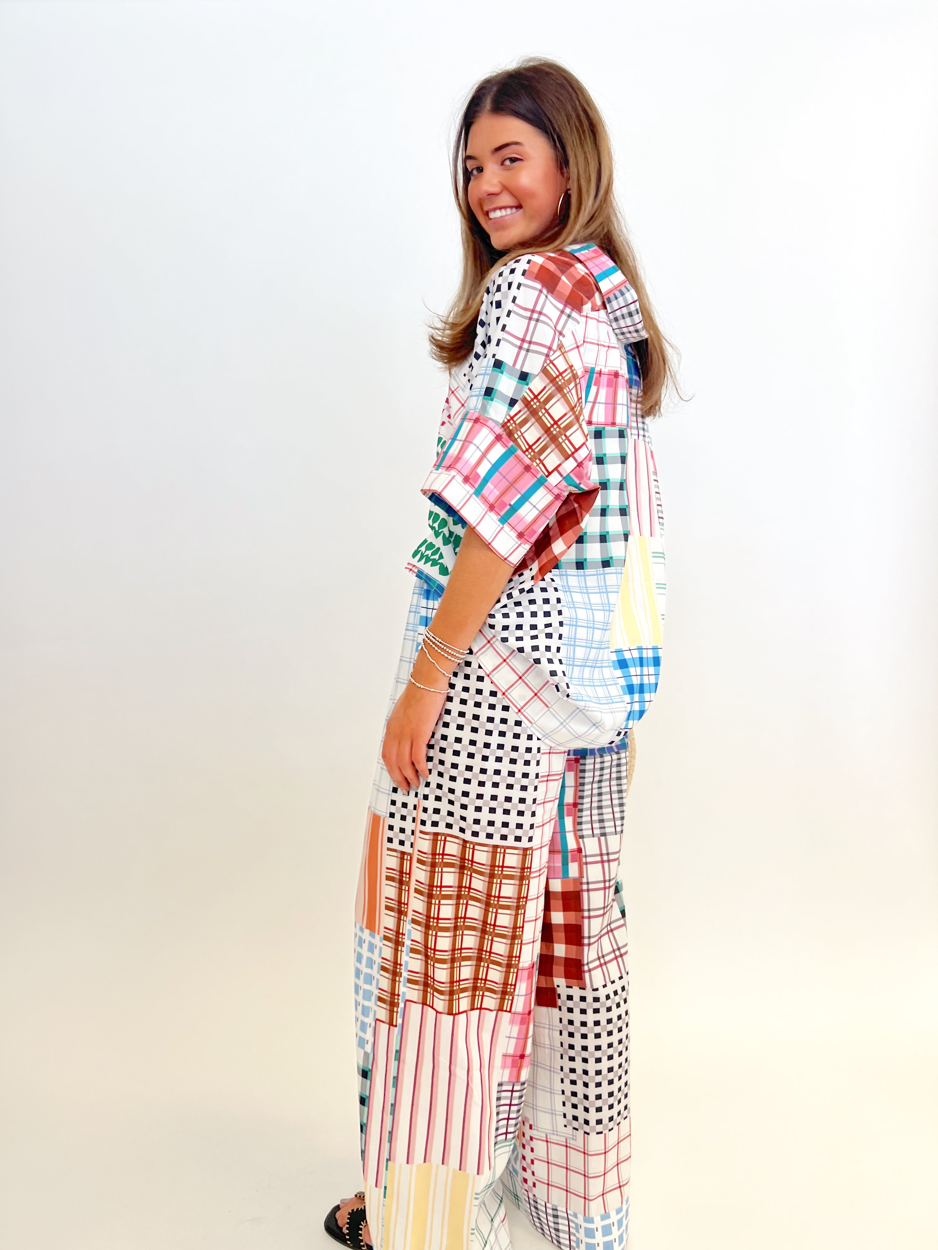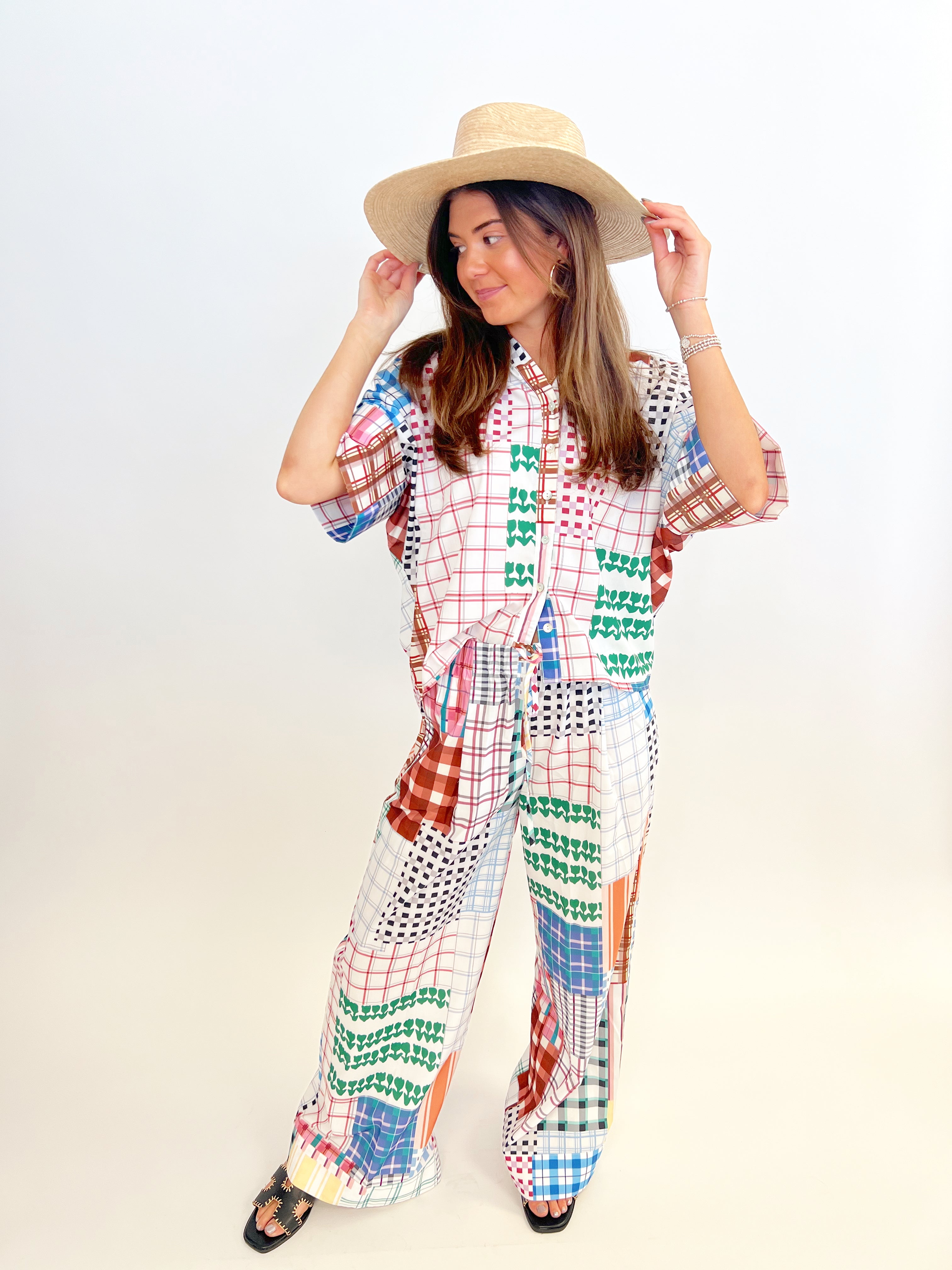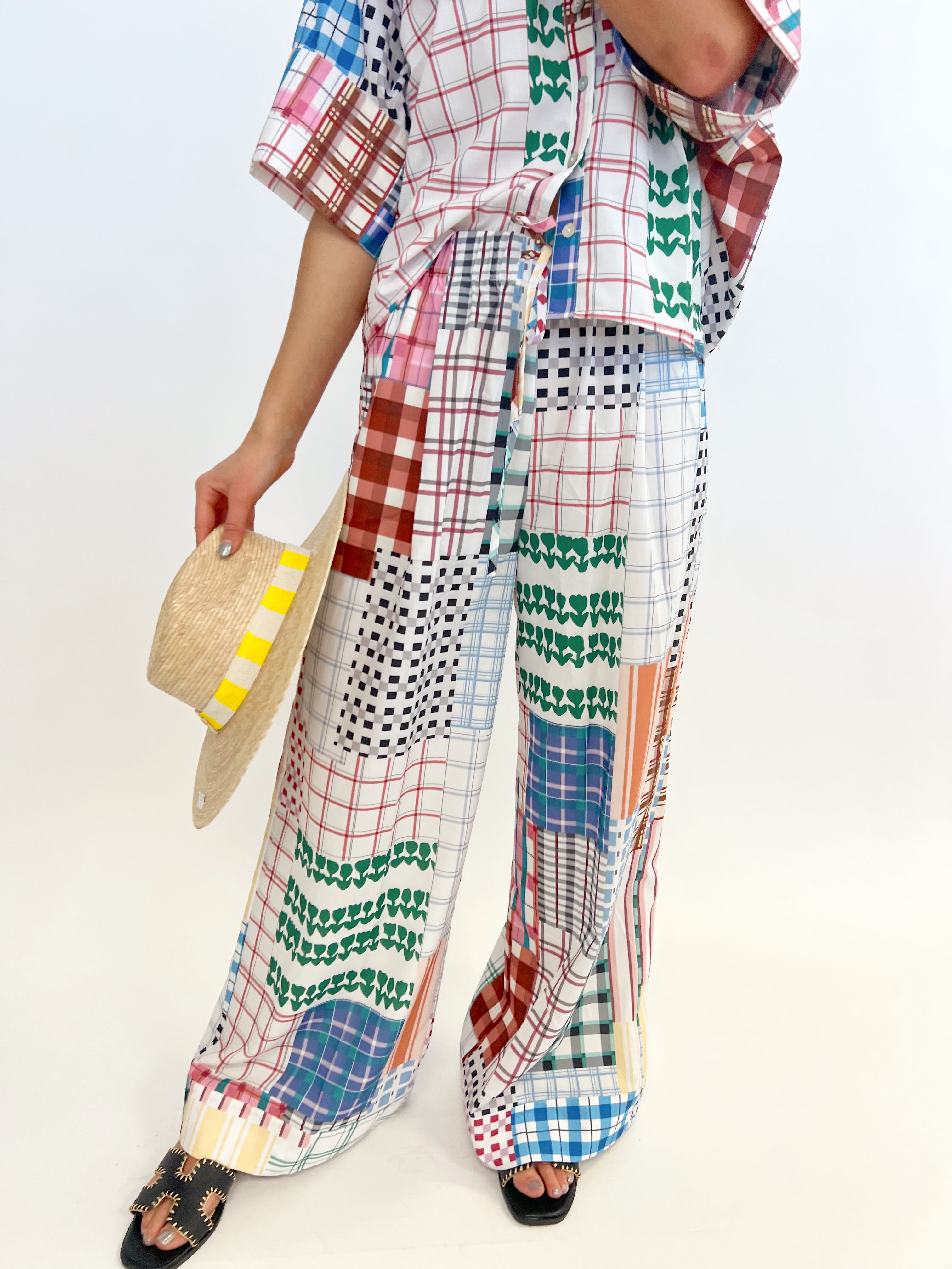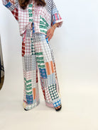 Unleash your free spirit with these mixed print and color wide leg pants. The elastic waistband and adjustable fit provide comfort, while the pockets add functionality. Be bold, bright, and effortlessly stylish in these playful pants. * Make is a set with our matching Free Form Contrast Top