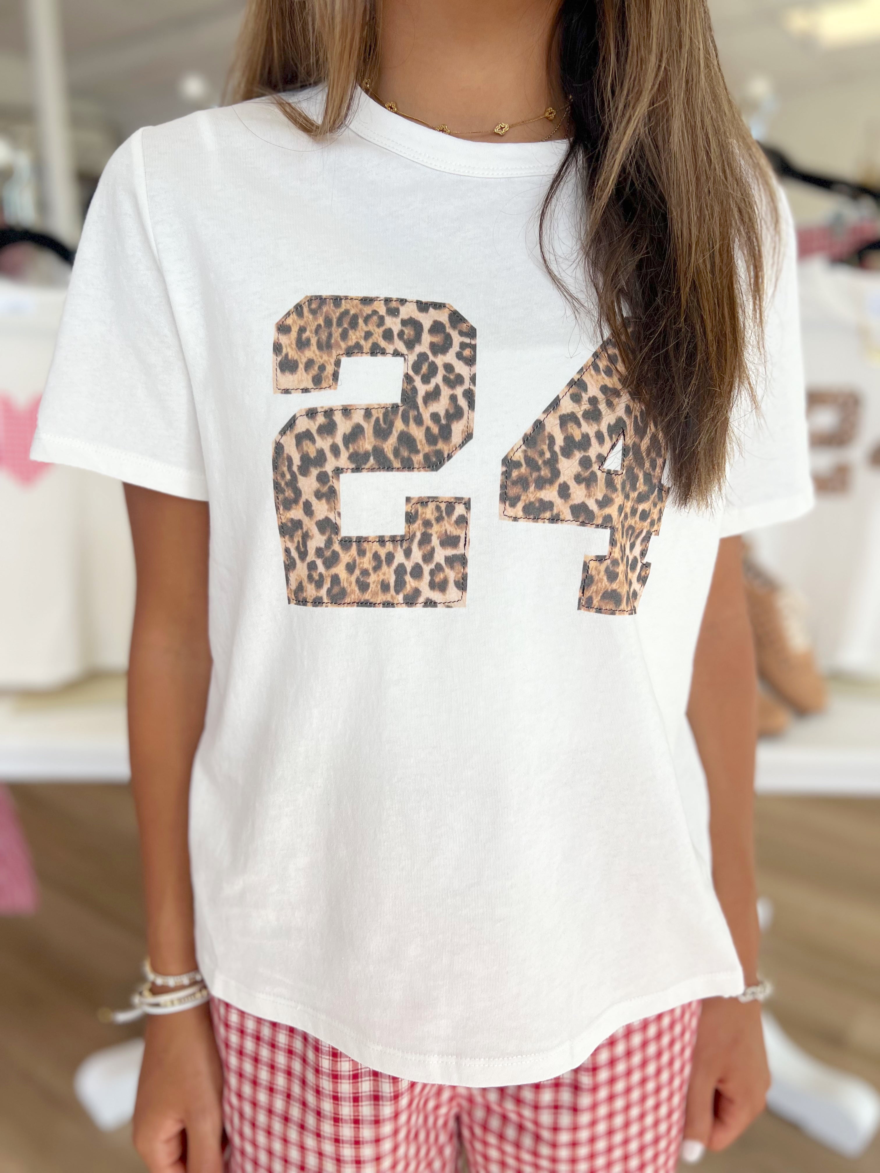 This playful white tee features a relaxed fit and a classic round neck for all-day comfort. The standout varsity-style number graphic is filled with a bold cheetah print, adding a fun and fierce touch to your casual look. Perfect for mixing and matching with our boxer shorts or your favorite denim