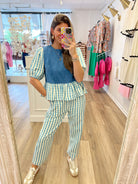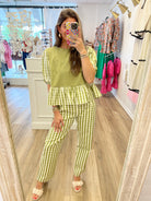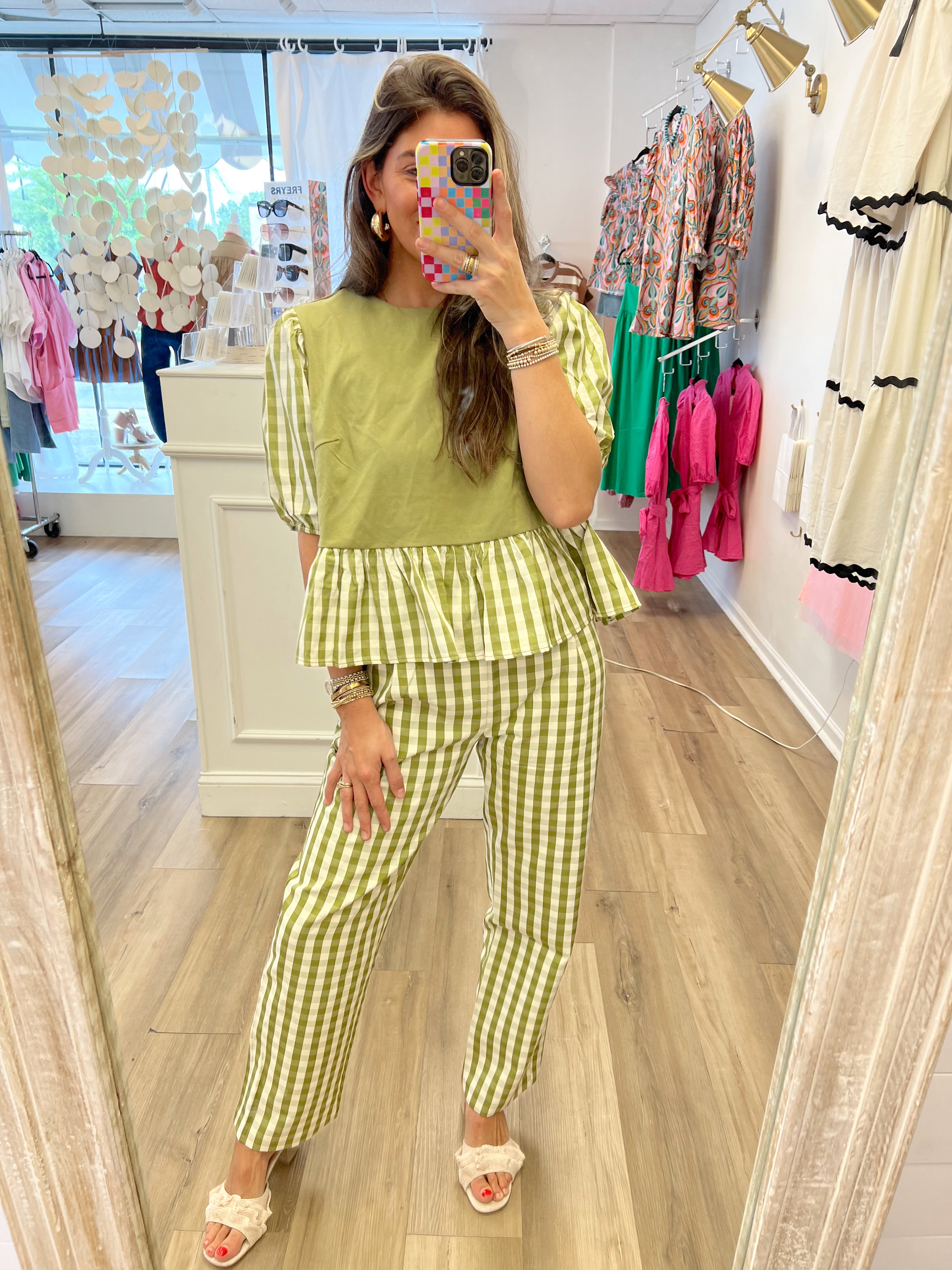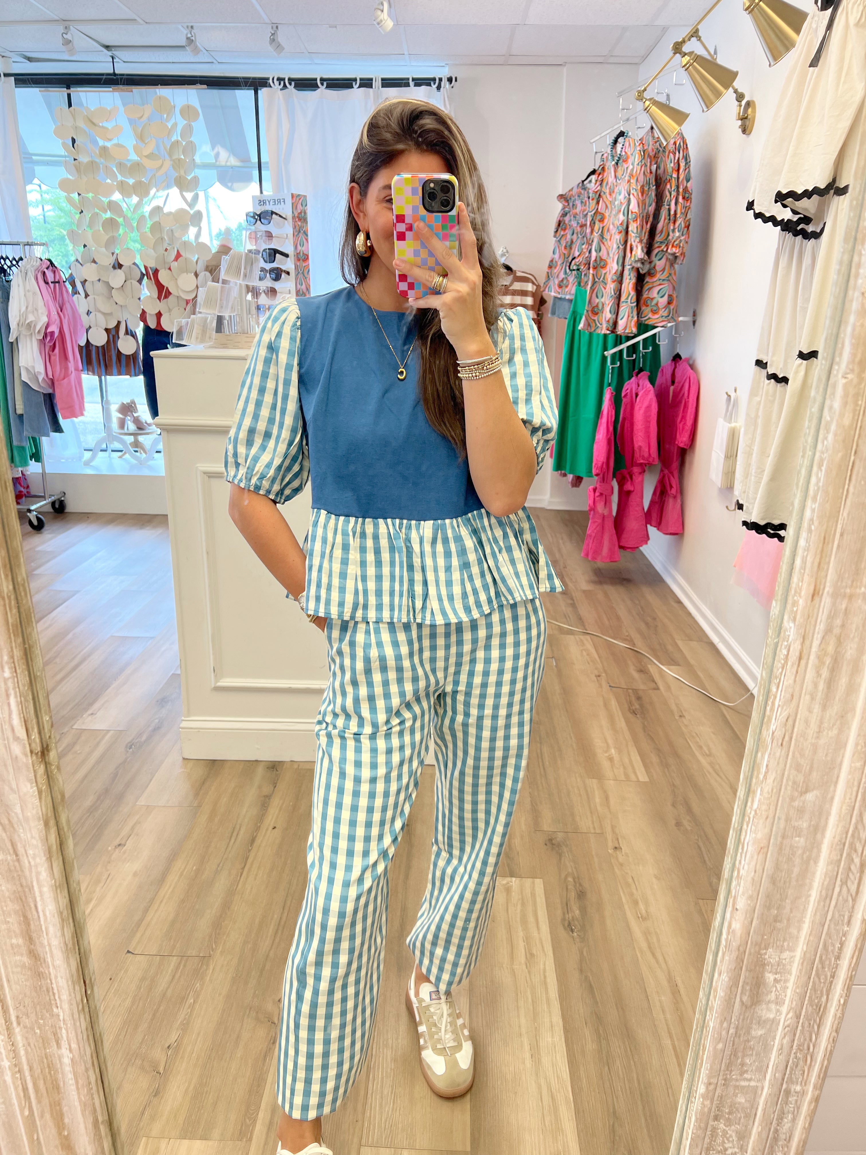 Jump into fashion with the Go For It Gingham Trouser. These playful pants feature a trendy gingham print and a comfortable elastic waist, making them perfect for any occasion. With a classic trouser style and convenient pockets, you'll be ready to take on the day in style. Time to go gaga for gingham!
