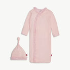 Our modal Gown & Hat Set is a newborn, late-night must-have. Magnets take diaper changes to a new level of fuss-free efficiency, while a closed bottom keeps toes and feet warm and cozy—which is mission critical during your third middle-of-the-night change. Other amazing features include the silkiest, softest modal fabric and built-in mitten cuffs.