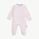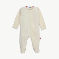 Our organic cotton pointelle Magnetic Footie, also known as a sleeper, is made with magnetic closures that are quick, quiet, and a lifesaver for middle-of-the-night changes. Naturally soft + breathable for year-round wear, it's the perfect layette present made of organic cotton + delicate pointelle stitching.